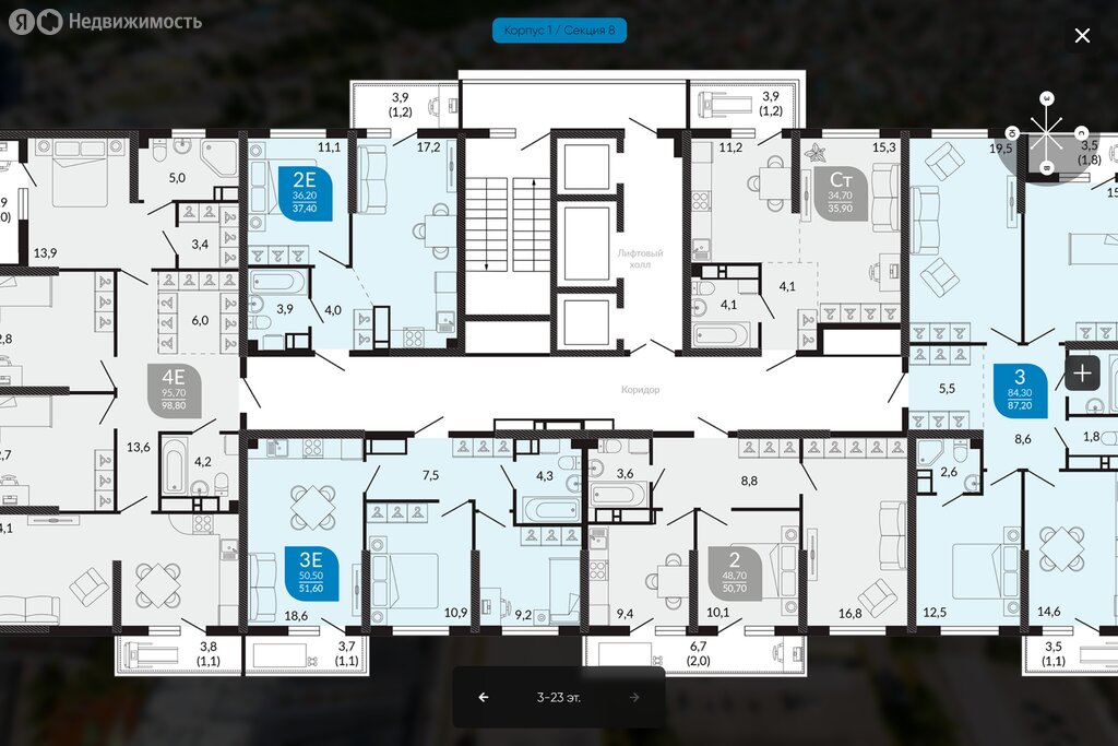 3-комнатная квартира: Новороссийск, жилой комплекс Облака 2 (98.8 м²)