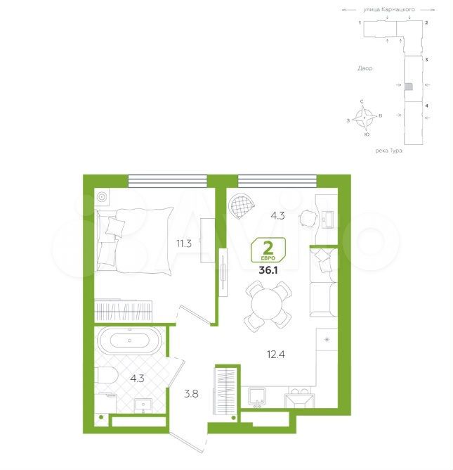 - Удобное расположение, близость к центру.
