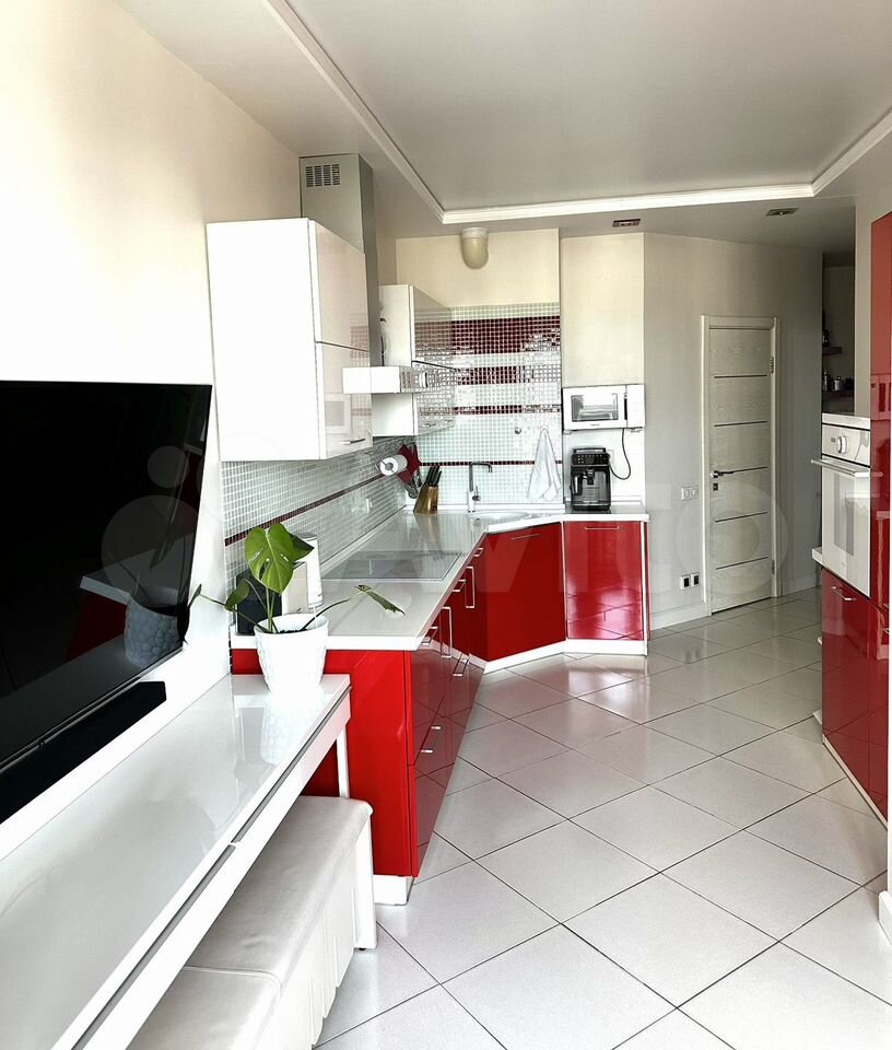 • большая кухня-гостиная со встроенным кухонным гарнитуром и каменной столешницей. Остаётся вся встроенная техника : варочная панель , вытяжка, духовой шкаф, холодильник (gоrеniе), посудомоечная машина , стирально-сушильная машина (Еlесtrоluх), сплит-система (LG) , ТВ Sаmsung ( в кухне ) и микроволновка (Sаmsung);