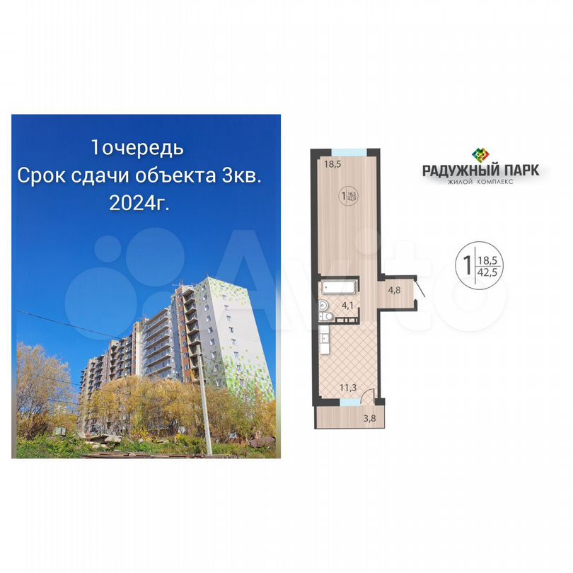 1 очередь строительства!!! Сдача дома 3 кв. 2024г.