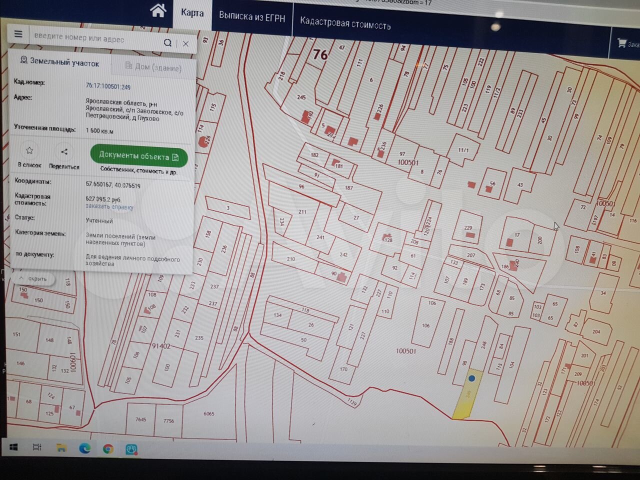 Земельный участок с кадастровым номером 76:17:100501:249 расположен в деревне Глухово Ярославского района в 8 километрах от границы города Ярославля (Детская железная дорога) по направлению к селу Диево-Городище, имеет прямоугольную форму, на нём нет насаждений и построек, в течении многих лет использовался для выращивания сельскохозяйственных культур. Подъезд к участку возможен как со стороны деревни, так и с противоположной стороны. Деревня Глухово газифицирована, недалеко от границ участка проходит водопровод. В 1 километре от деревни Глухово расположена центральная усадьба - деревня Пестрецово, где есть магазины, почта, дом культуры, сбербанк, школа и детский сад. До деревни Пестрецово из Ярославля проложено асфальтированное шоссе. В деревне Глухово круглогодично живут соседи. Дорогу зимой постоянно чистят от снега. Регулярное автобусное сообщение до деревни Пестрецово от торгового центра Космос на проспекте Авиаторов. Продажа от собственника. Отличный вариант для воплощения мечты о собственном загородном доме и личном подсобном хозяйстве за относительно небольшие деньги! Возможна продажа смежного участка и соответственно увеличение площади застройки в 2 раза. Показ участка возможен в будние дни- вечером, в выходные дни - в удобное для Вас время
