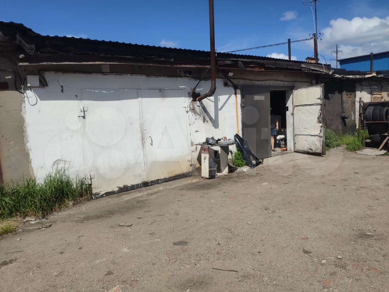 У каждого гаража отдельные ворота с внутренними замками, между гаражами - дверь и печь.