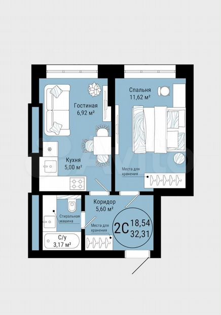 Общая площадь: 32,31 м2.