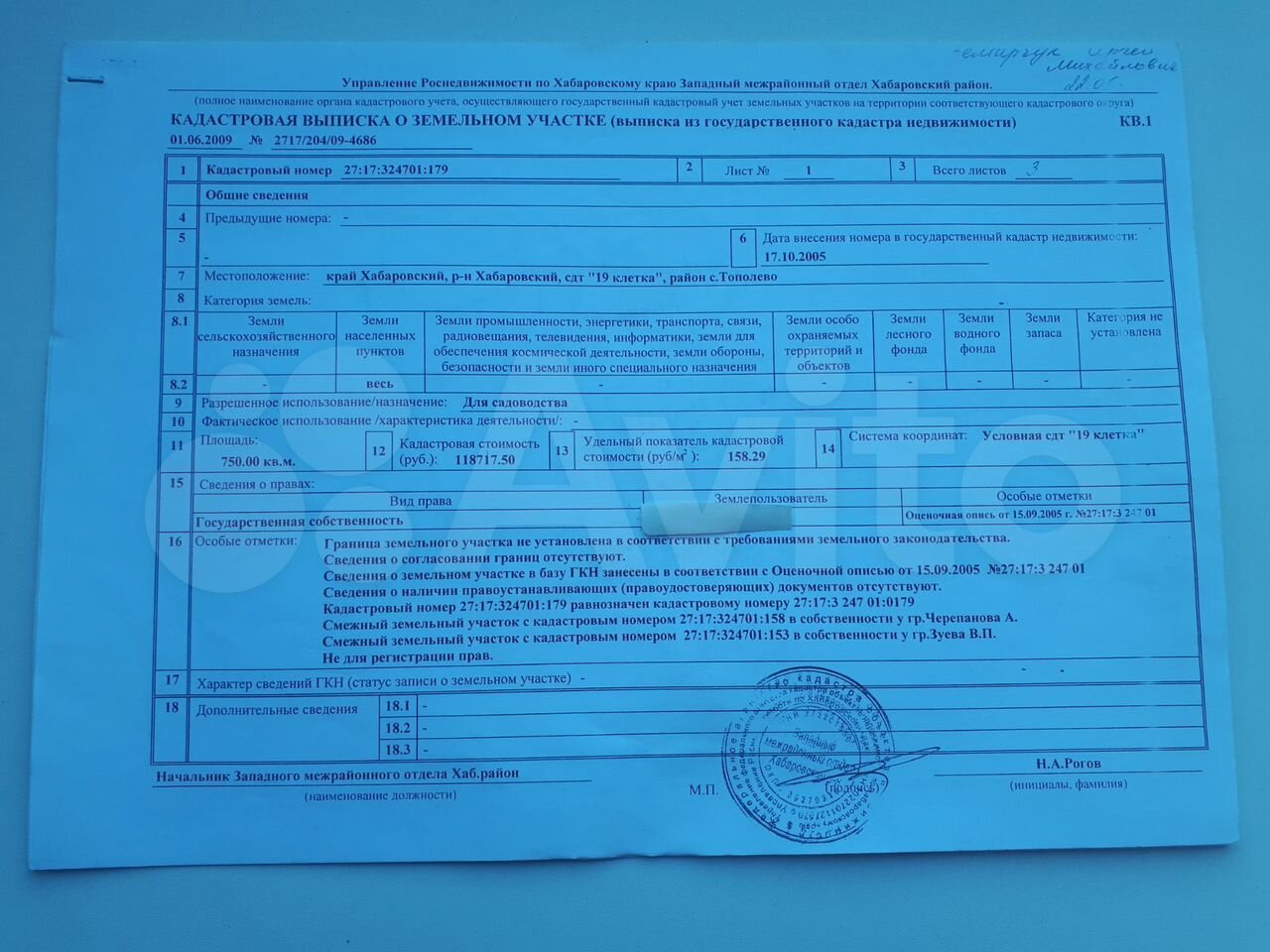 Описание: Продам земельный участок площадью 792кв.м. межевание проведено. Кадастровый номер 27:17:324701:179
