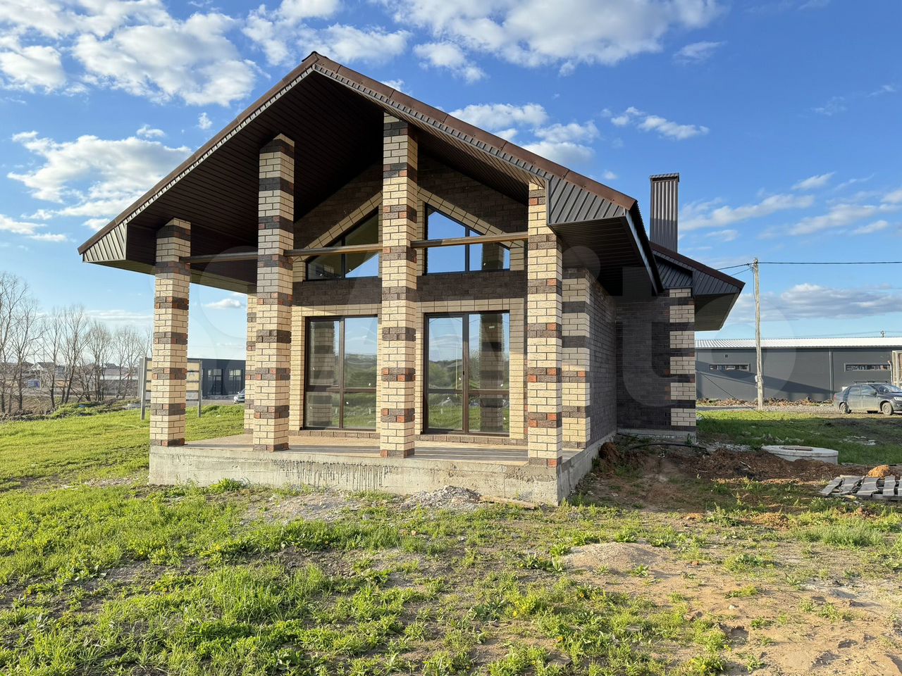 Дом выполнен из газобетона, облицовочный кирпич. Площадь дома 120 кв.м, три спальни, кухня-гостиная, бойлерная, терраса, два санузла, гардеробная.
