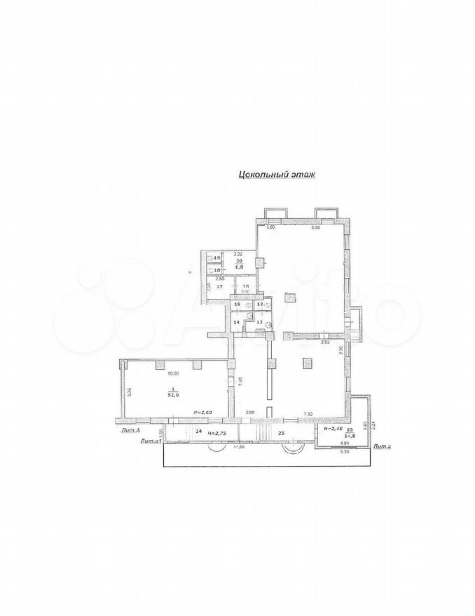Помещение на цокольном этаже жилого дома. С двумя входами: со стороны сквера и с торца здания (на плане справа). Требуется косметический ремонт. Дом после капитального ремонта.