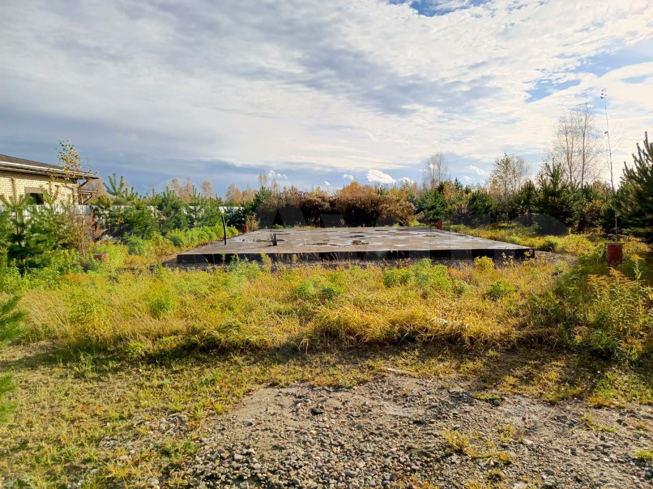 На участке от строительства фундамента остался плодородный грунт и 3/4 от 20-тонного самосвала с гравием.