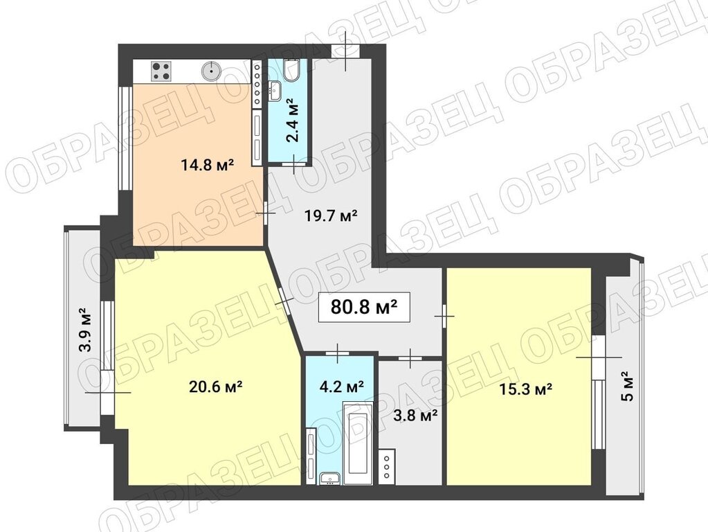 Общая площадь: 80,8 м² | Этаж: 10