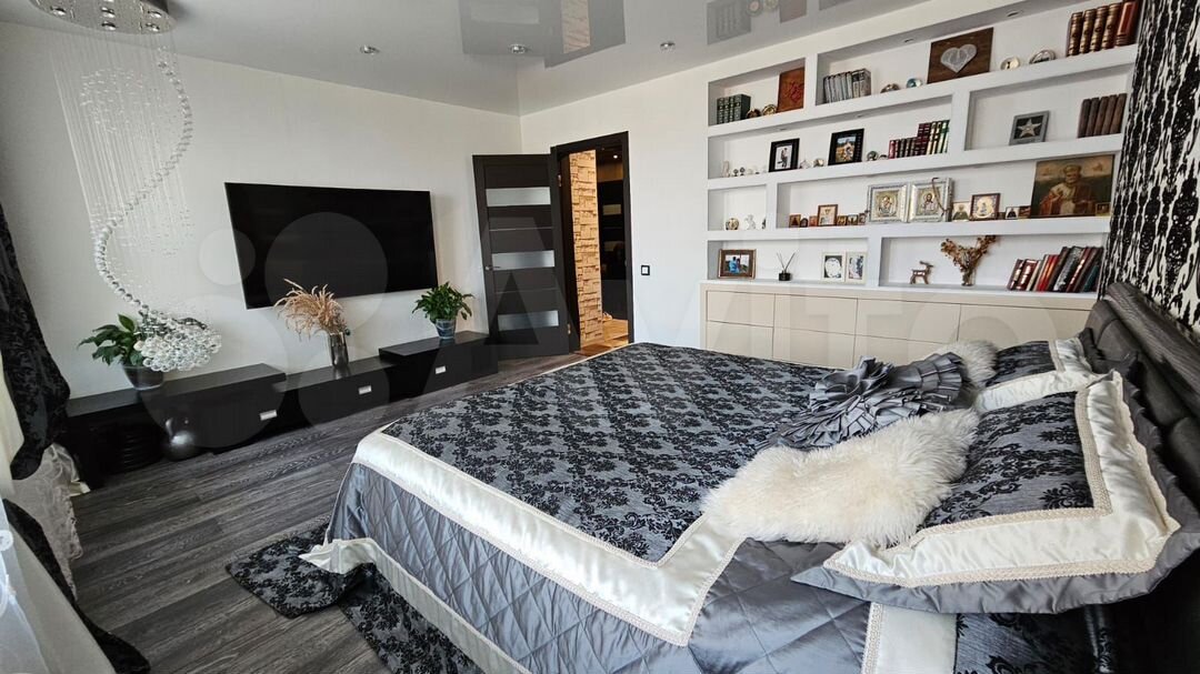 В квартире две большие просторные спальни, кухня-гостинная (13,6 м²), гардеробная, совмещённый большой санузел (5,5 м²), остеклённая лоджия. Окна квартиры выходят на обе стороны дома - во двор и на Амур, где вечером можно наблюдать красивейшие закаты.