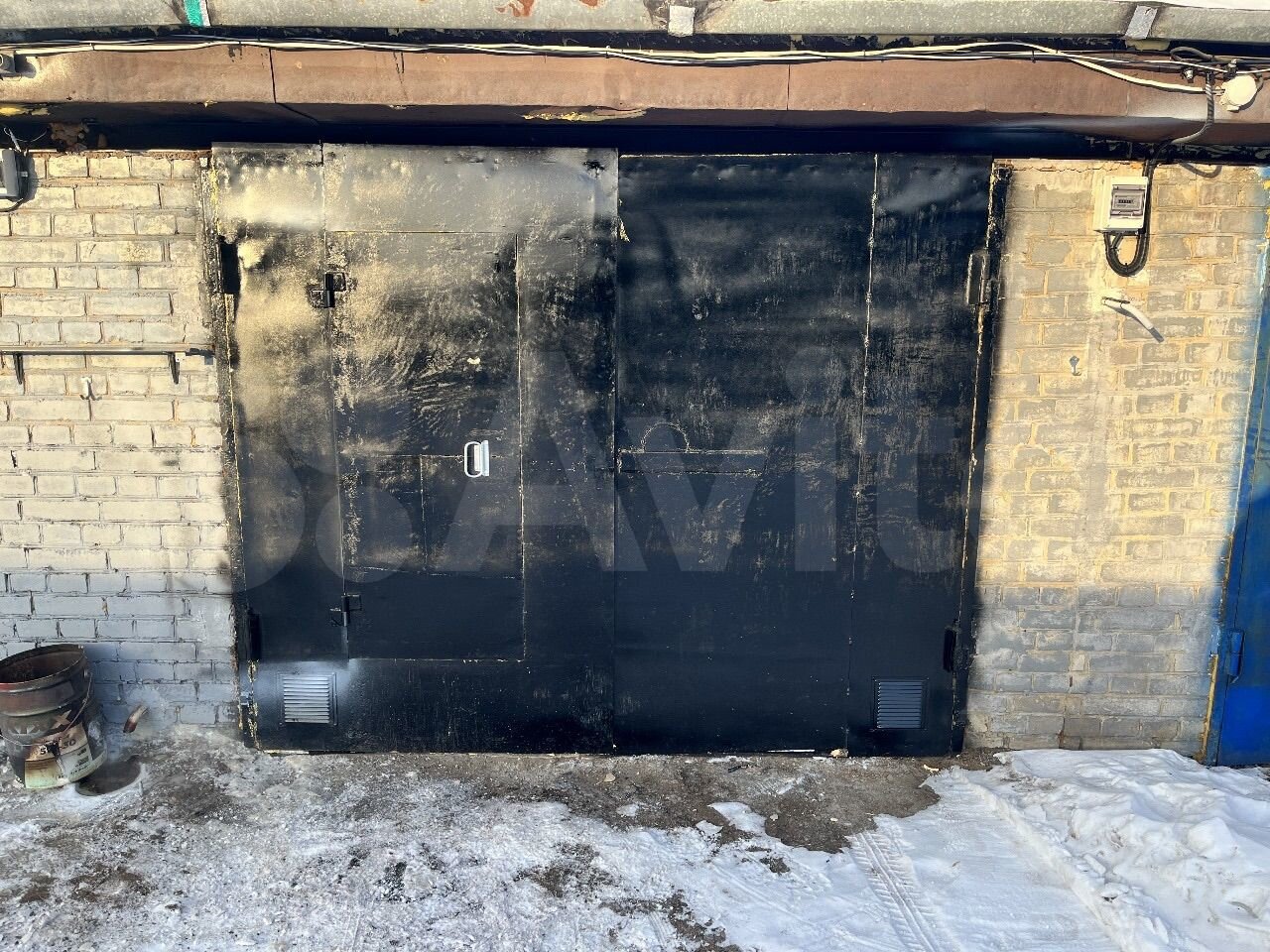 В гараже утеплены стены, потолок и ворота, стены и ворота обшиты ОСБ, а также имеется брезентовая шторка.