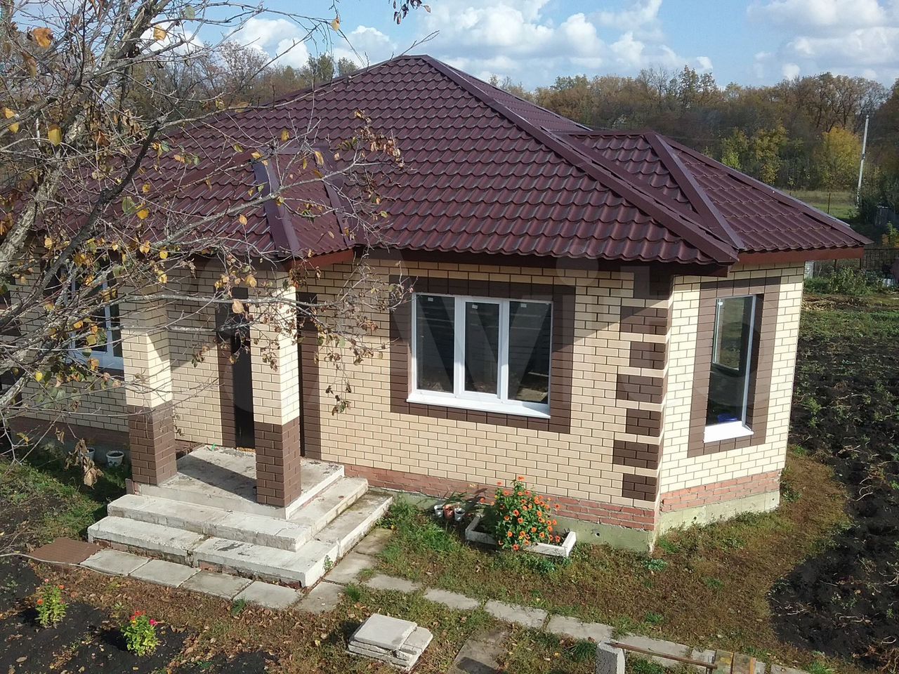 Дом 10х9,5м из облицовочного кирпича цвета имбирь с шоколадным обрамлением и декоративным эркером. Имеется подвальное помещение 2х3м и высотой 2м с люком в подполье. Под всей площадью дома техническое подполье высотой 1,2м. В подполье доступ ко всем коммуникациям.