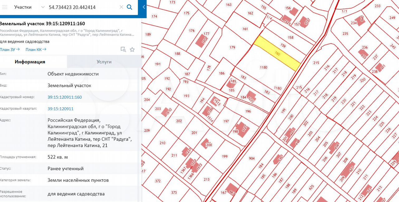 Продается земельный участок г Калининград, тер СНТ "Радуга", пер Лейтенанта Катина, 21.