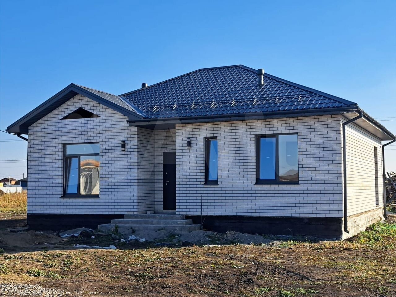 Планировка - 3 спальни, санузел,котельная, кухня-столовая и гостиная в едином пространстве.