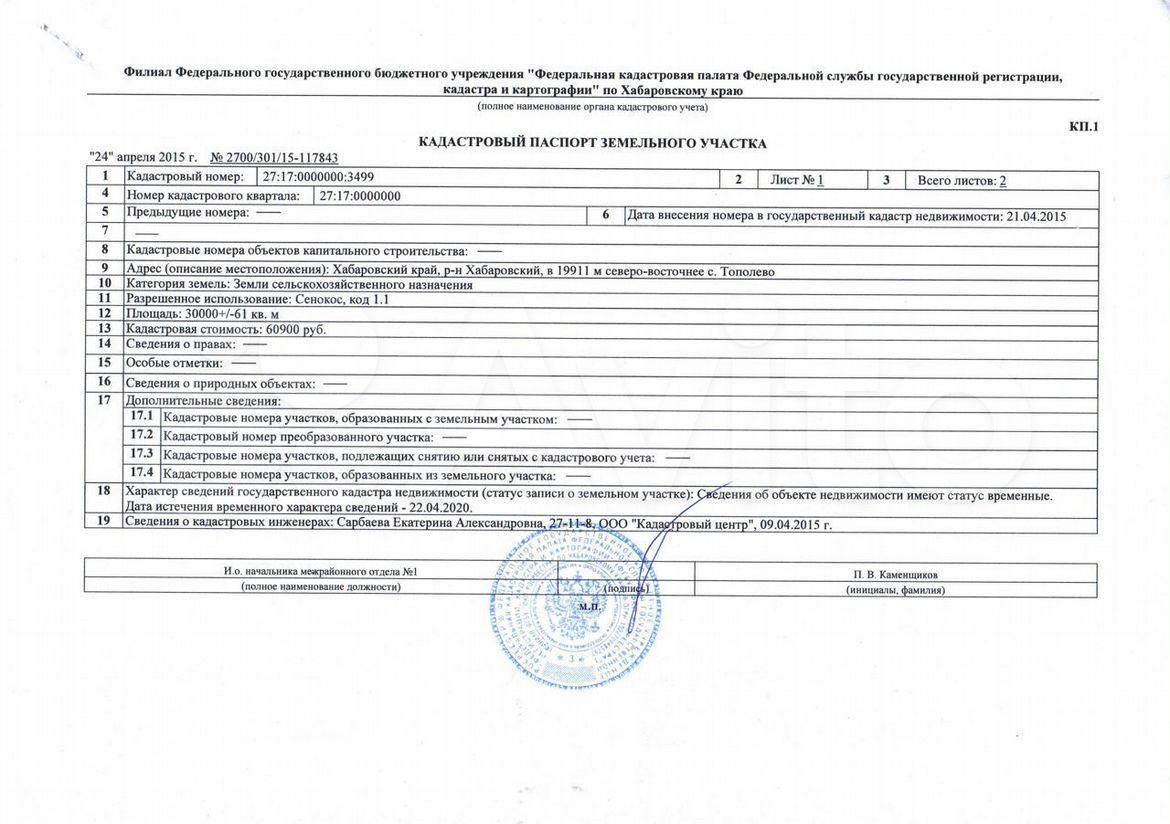 Кадастровый номер: 27:17:0000000:3499