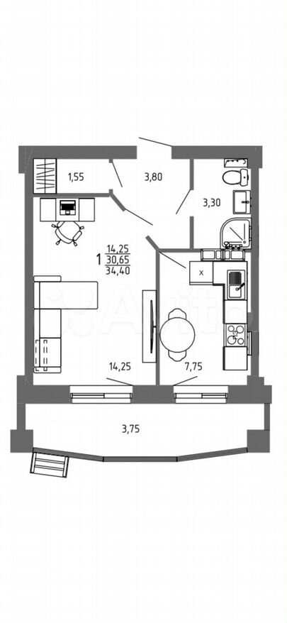 34 м2