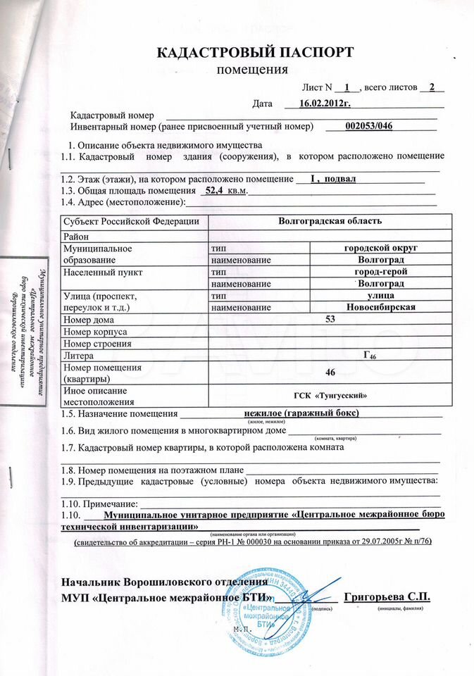 ГСК "Тунгусский" Гараж оформлен в собственность. Общая площадь с подвалом 52,4 кв. м, высота 2,2м