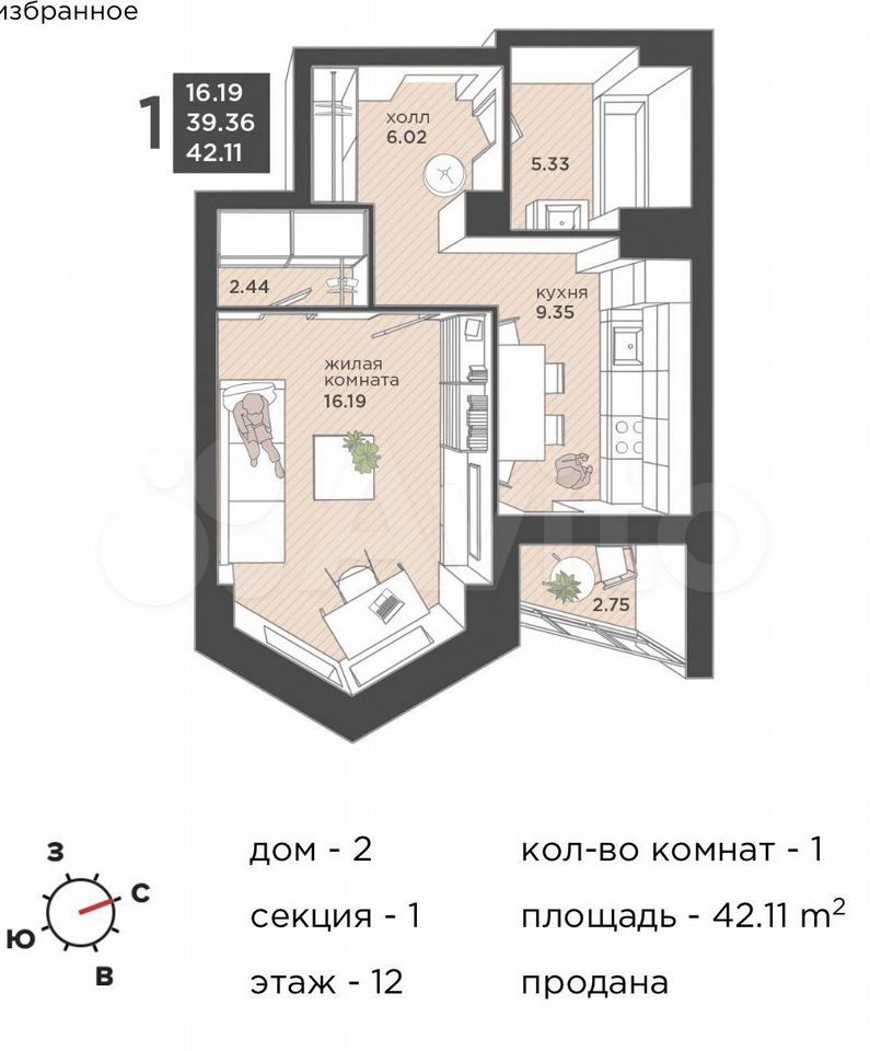 42 м2