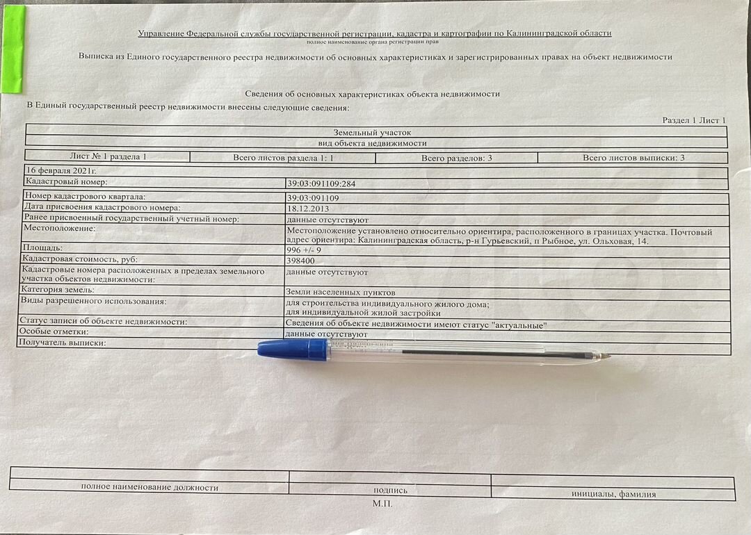 Продажа земельного участка от собственника.ИЖС. Пос.Рыбное ул.Ольховая 14 Кадастровый номер - 39:03:091109:284 Участок правильной формы, электричество по заявлению в Янтарьэнерго, газификация происход...
