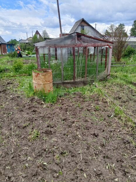 участок с домиком, теплица, ягоды:клубника, чёрная, белая, красная смородина, крыжовник. Есть колодец, электричество, много цветов.