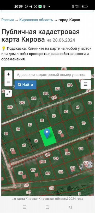 Кадастровый номер: 43:30:390924:2094 Расположение смотрите по публичной карте Участок ижс Собственность Без ограничений Главная дорога отсыпана, от главной до участка дорога не спланирована Торга нет ...