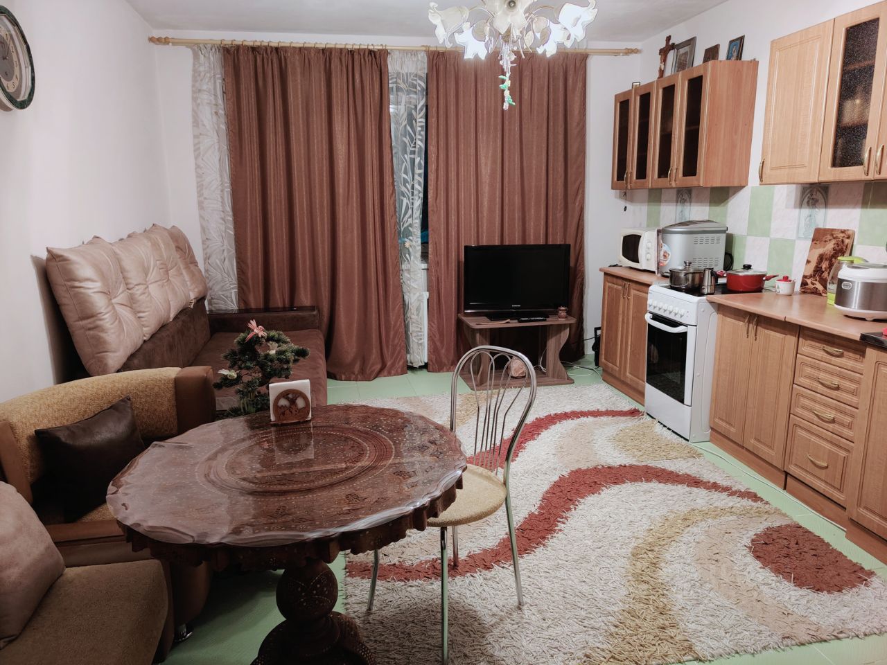 в квартире свежий ремонт,в жилой комнате постелен ламинат,кухня коридор линолеум,застекленный балкон. удобная развязка,детские сады школы магазины,хорошая транспортная развязка. все вопросы по телефон...