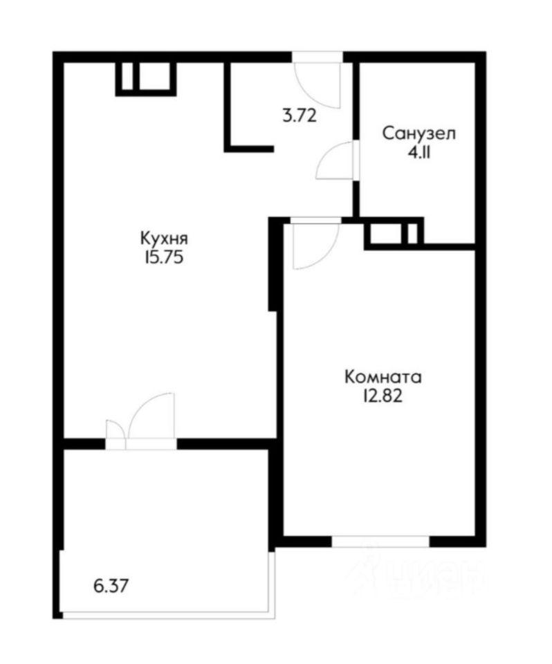 Продается однокомнатная квартира в микрорайоне Любимово. Общая площадь 44,5 кв. м: кухня - 15,75, лоджия - 6,37, комната - 12,82. Высота потолка 2,74 м. Окна выходят во двор. Отделка White-box от заст...