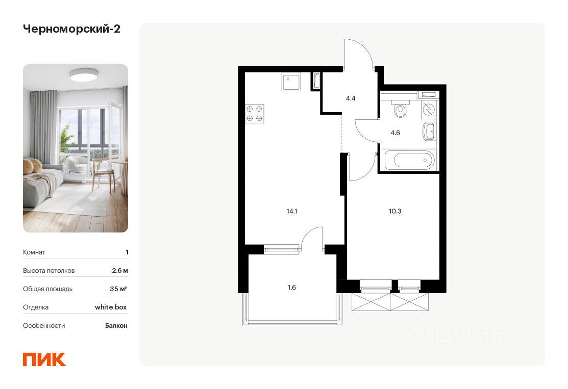 Продаётся 1-комн. квартира площадью 35 кв.м на 6 этаже 15 этажного дома (Корпус 2Б, Секция 1) проекта ПИК "Черноморский-2". Светлый просторный подъезд на уровне земли, функциональная планировка, больш...