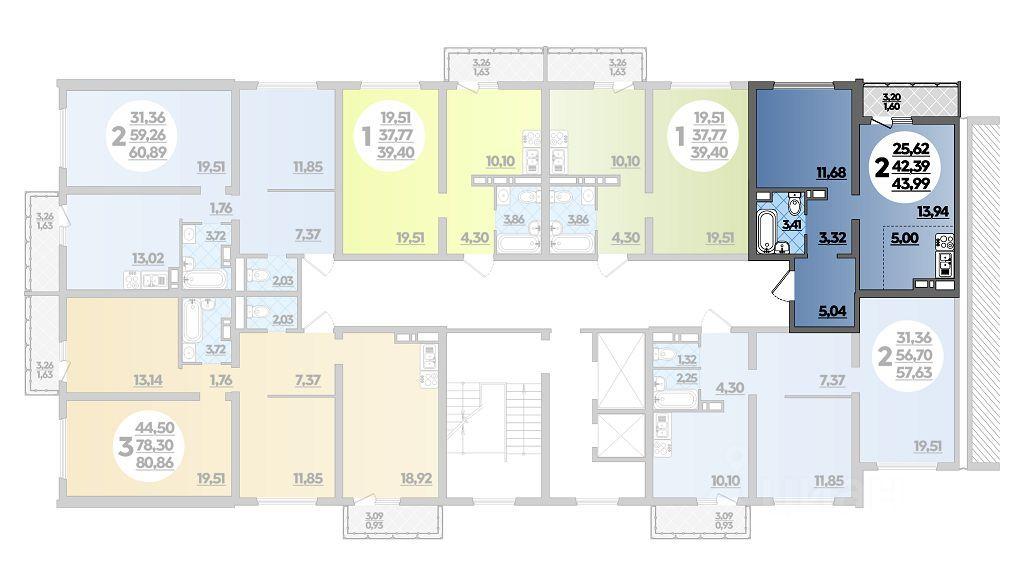 Продаётся 2-комнатная квартира в строящемся доме (Литер 19), срок сдачи: I-кв. 2025, общей площадью 43.99 кв.м., на 4 этаже. Новый жилой дом от застройщика "СЗ ОБД-СТРОЙ" расположен по адресу Краснода...