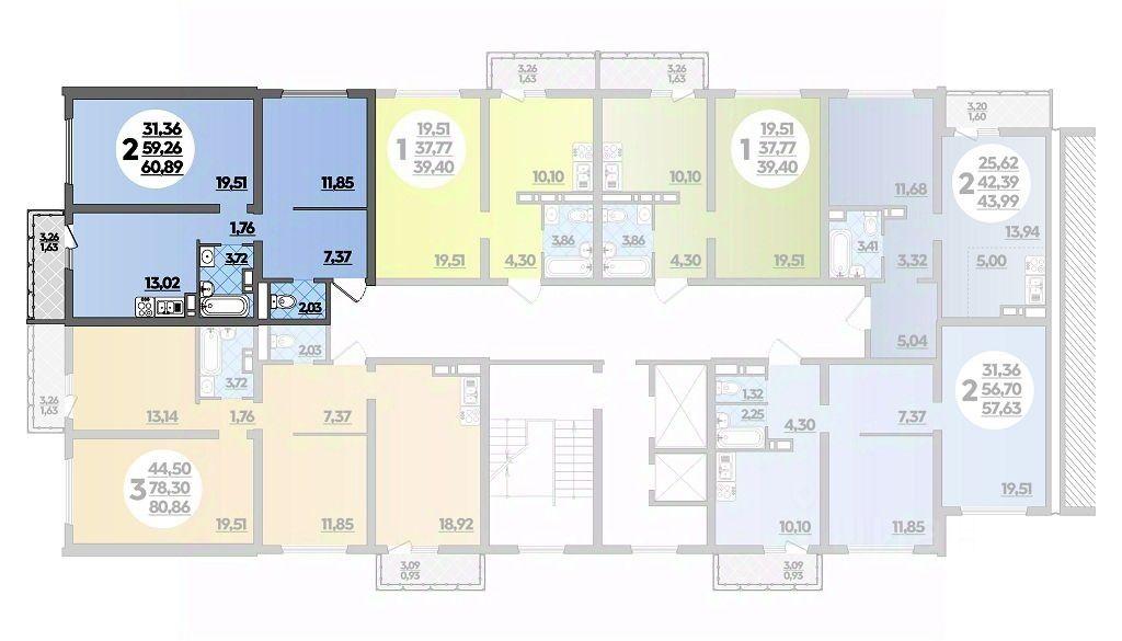 Продаётся 2-комнатная квартира в строящемся доме (Литер 19), срок сдачи: I-кв. 2025, общей площадью 60.89 кв.м., на 3 этаже. Новый жилой дом от застройщика "СЗ ОБД-СТРОЙ" расположен по адресу Краснода...
