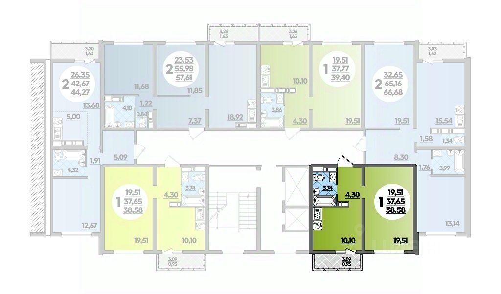 Продаётся 1-комнатная квартира в строящемся доме (Литер 19), срок сдачи: I-кв. 2025, общей площадью 38.58 кв.м., на 13 этаже. Новый жилой дом от застройщика "СЗ ОБД-СТРОЙ" расположен по адресу Краснод...