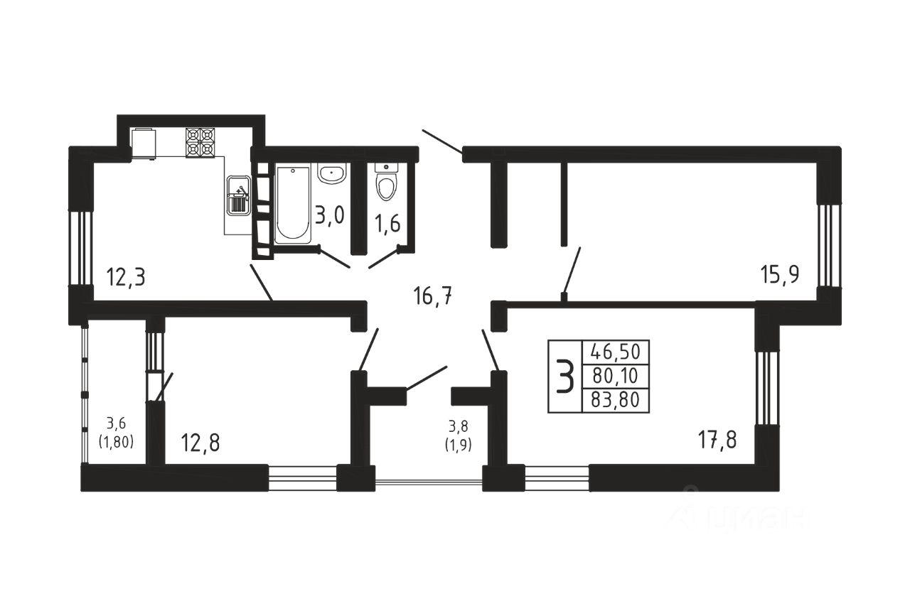Продаётся 3-комнатная квартира в строящемся доме (Корпус 3), срок сдачи: 2-кв. 2026, общей площадью 83.82 кв.м., на 7 этаже. ЖК "Море Море" - современный проект бизнес-класса, расположенный на берегу ...