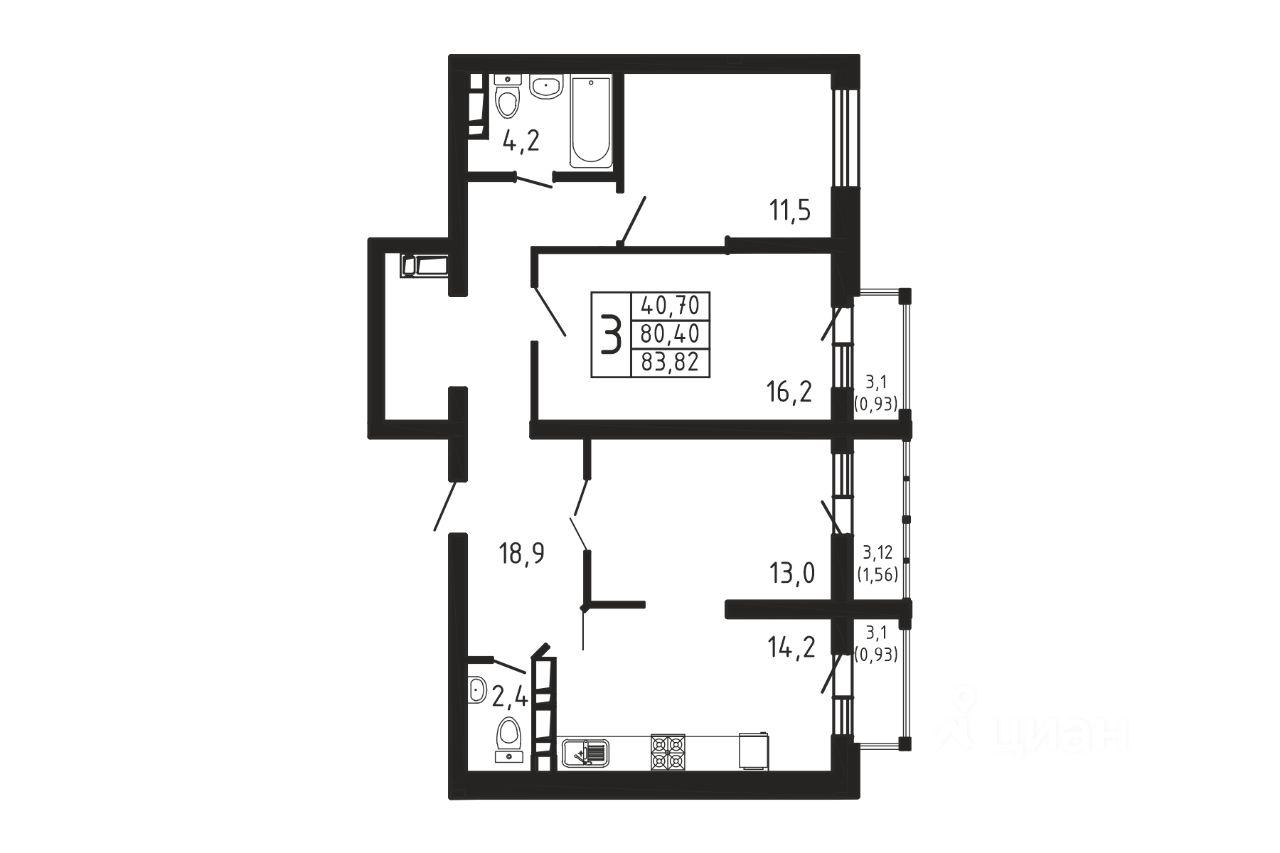 Продаётся 3-комнатная квартира в строящемся доме (Корпус 3), срок сдачи: 2-кв. 2026, общей площадью 83.82 кв.м., на 4 этаже. ЖК "Море Море" - современный проект бизнес-класса, расположенный на берегу ...