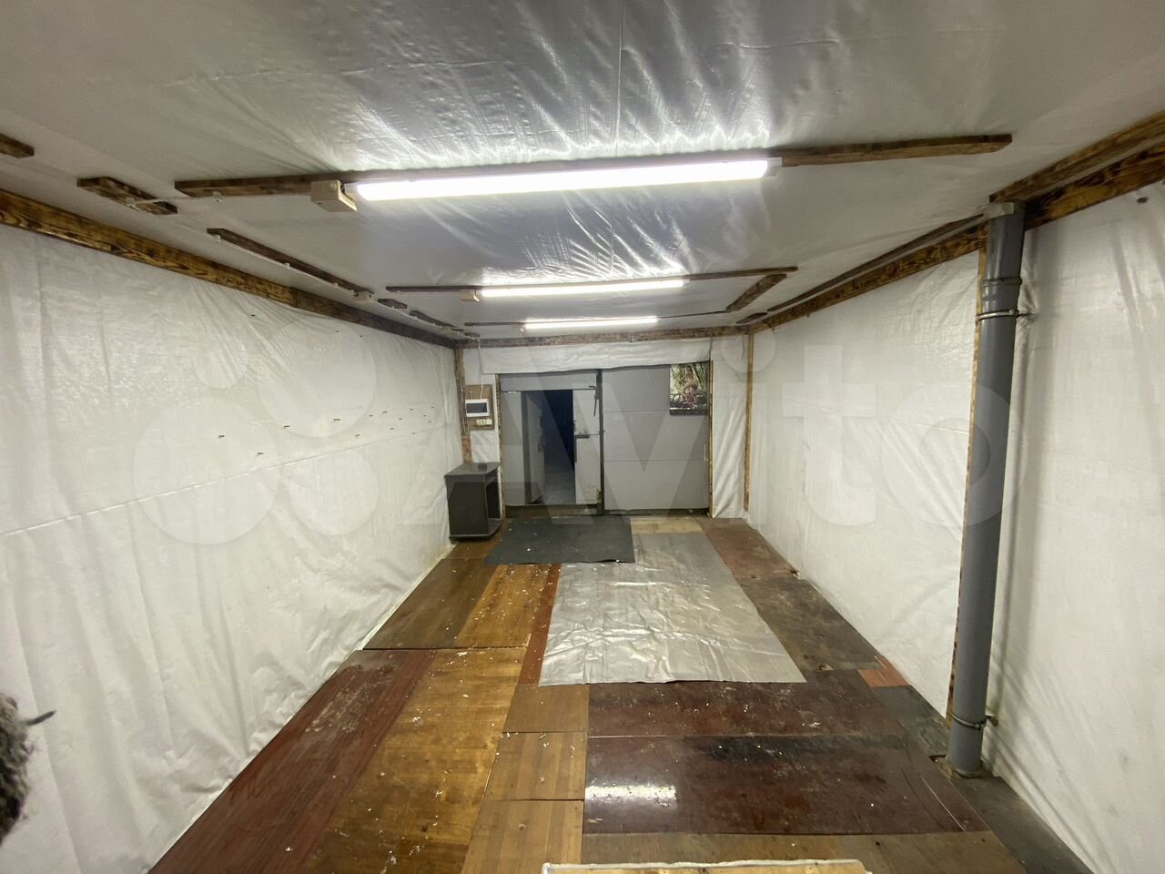 Гараж 21кв метр,был 24кв метра за счёт утепления квадратура уменьшилась, длинна 6метров ширина 4метра без утепления, есть полноценный цокольный этаж с весь гараж, сам гараж отделан сайдиноком, утеплён...