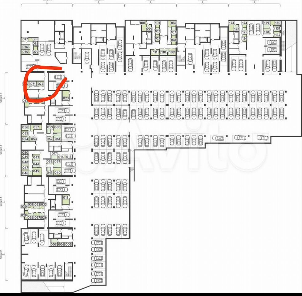 Продам подземный паркинг на два машиноместа. Парковка "друг за другом". Отопление, охрана. Рядом с лифтом.