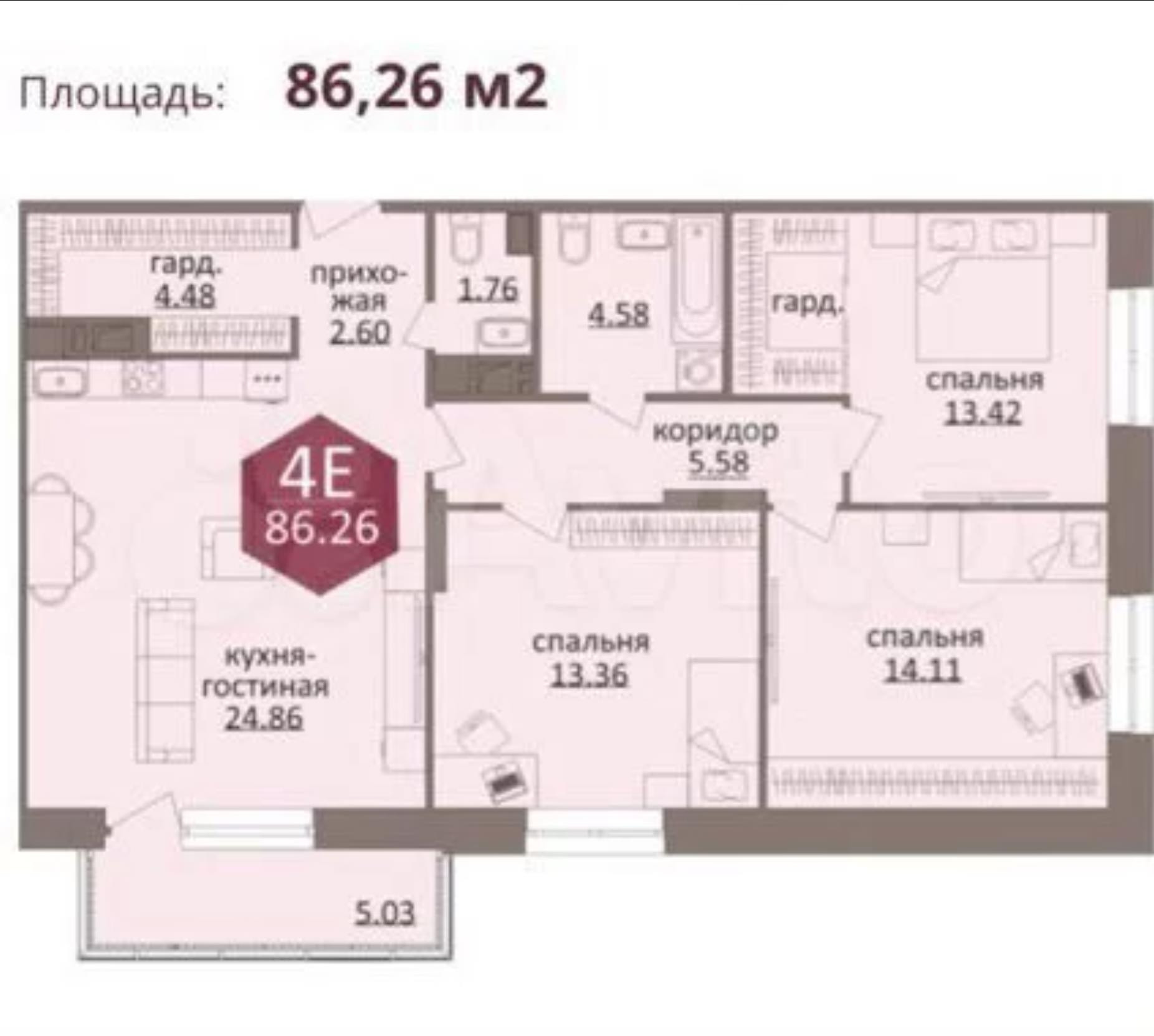 Продается 4-комнатная квартира евроформата в ЖК "Рубин" 85 кв м. Отличная планировка с зонами кухни и гостиной, 3 спальнями правильной формы, 2 гардеробными, 2 санузлами и панорамным балконом. Высота ...