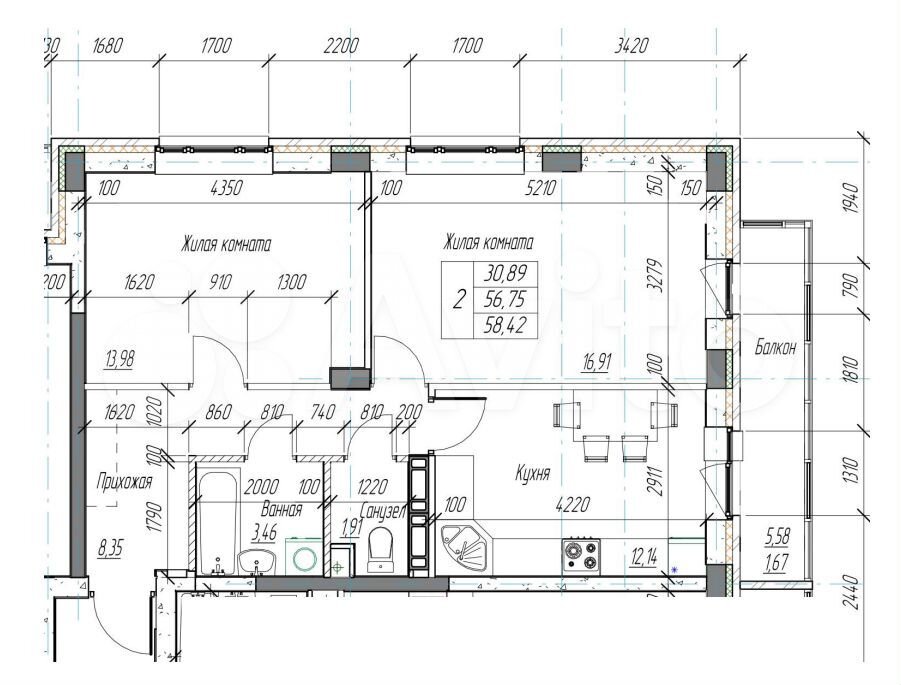 56 м2