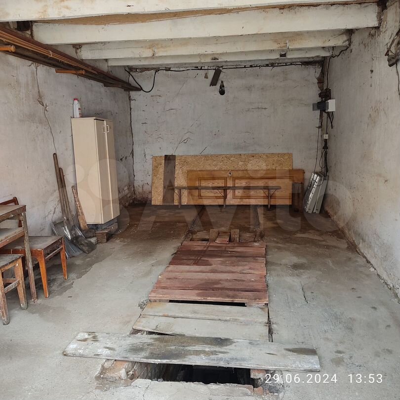 Капитальный гараж: стены - кирпич, пол - бетон, перекрытие крыши деревянное, крыша - железные листы, имеется смотровая яма. Общая площадь - 20,2 м2, высота потолка - 2,4 м, ширина гаража - 3,3 м, глуб...