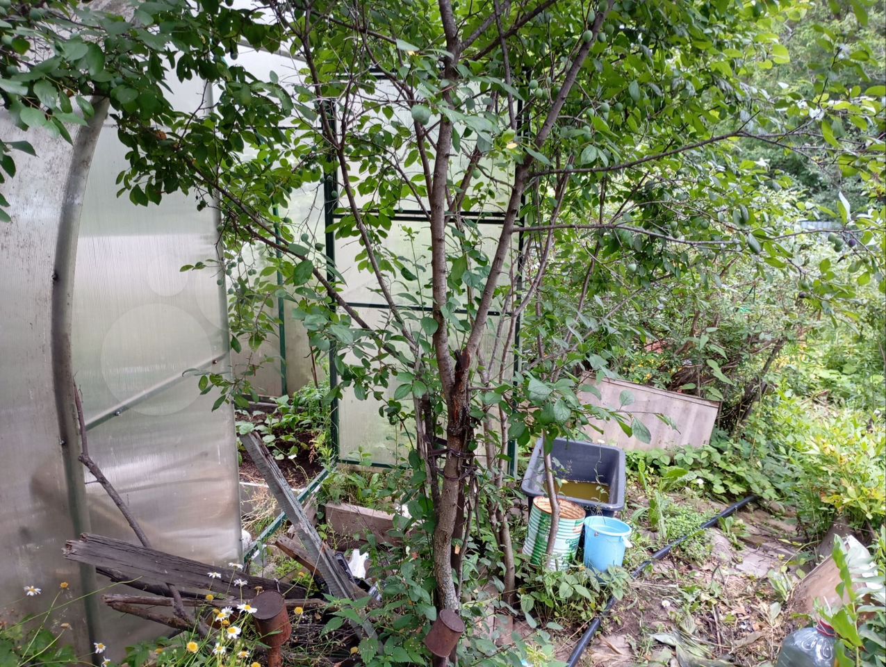 Продам садовый участок, ровный, на солнечной стороне. Огорожен забором, рядом лес, ключ родник, база,, Динамо,,Дом спалили давно Вместо него вагончик. Поликарбонатная теплица большая, парники, всевозм...