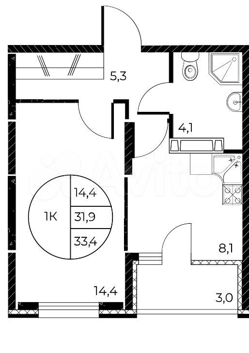 34 м2