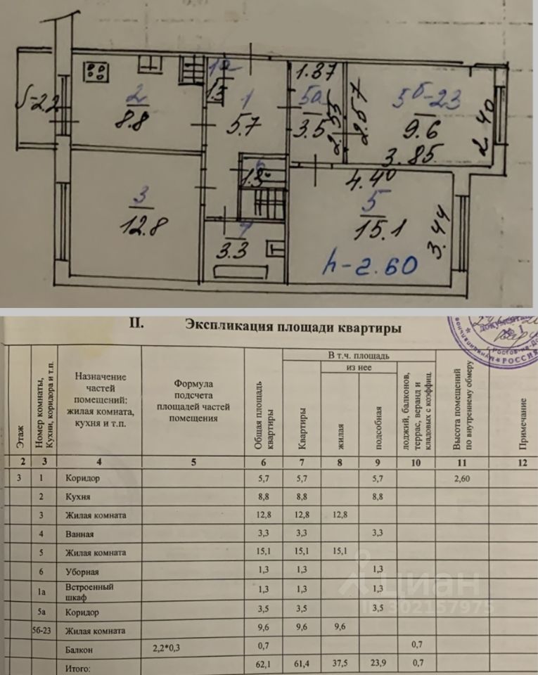 Продается 3к.квартира 62,1кв.м. на 3 этаже малоэтажного генеральского монолитного дома 1995 года постройки. Кухня 8,8кв.м с выходом на застекленную лоджию 2,2кв.м; Изолированные комнаты 15,1+12,8+9,6к...