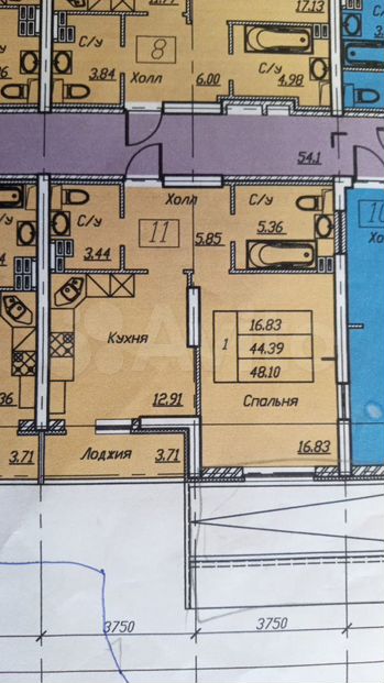 Квартира от собственника. Переуступка. 1-комнатная, 48,10 км.м. 2 этаж Лоджия закрытая 3,71 кв.м Квартира во двор. 1 секция.