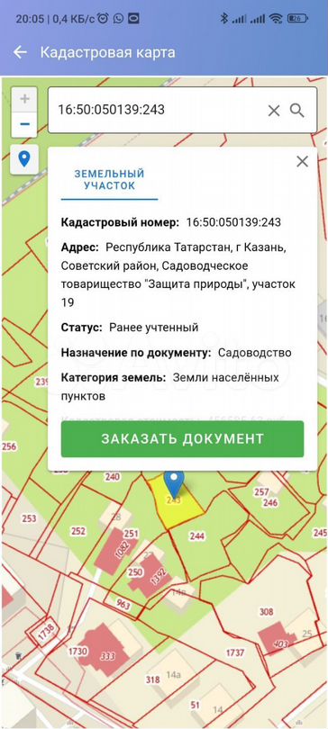 Продается участок, в черте города, возле Николая Ершова 49д, бывшее снт ,,Защита природы'' кадастровый номер 16:50:050139:243