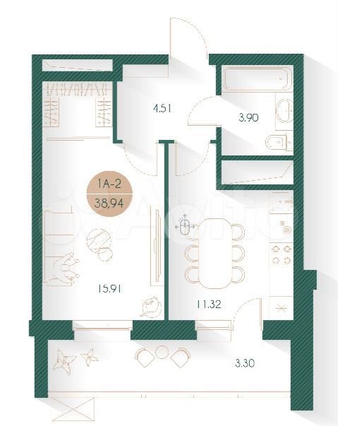 39 м2