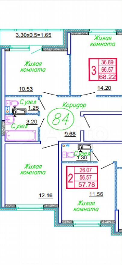 68 м2