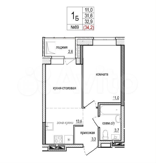 34 м2