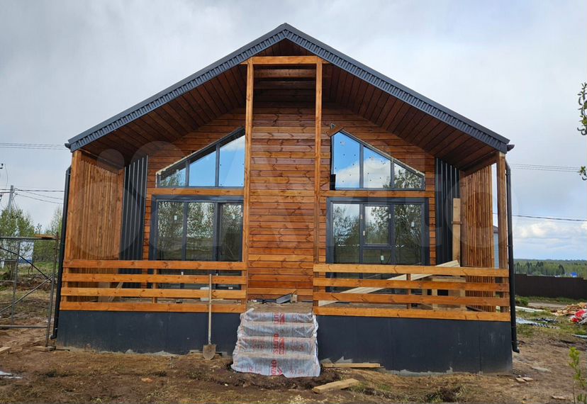 Фундамент: сваи бетонированные Каркас 150 базальт. Фасад и кровля профлист. Низ зашит ЦСП крашенным Терраса и вставки дерево. Второй свет. Внутри гипсокартон. Пол- ламинат. Коммуникаци : отопление кон...