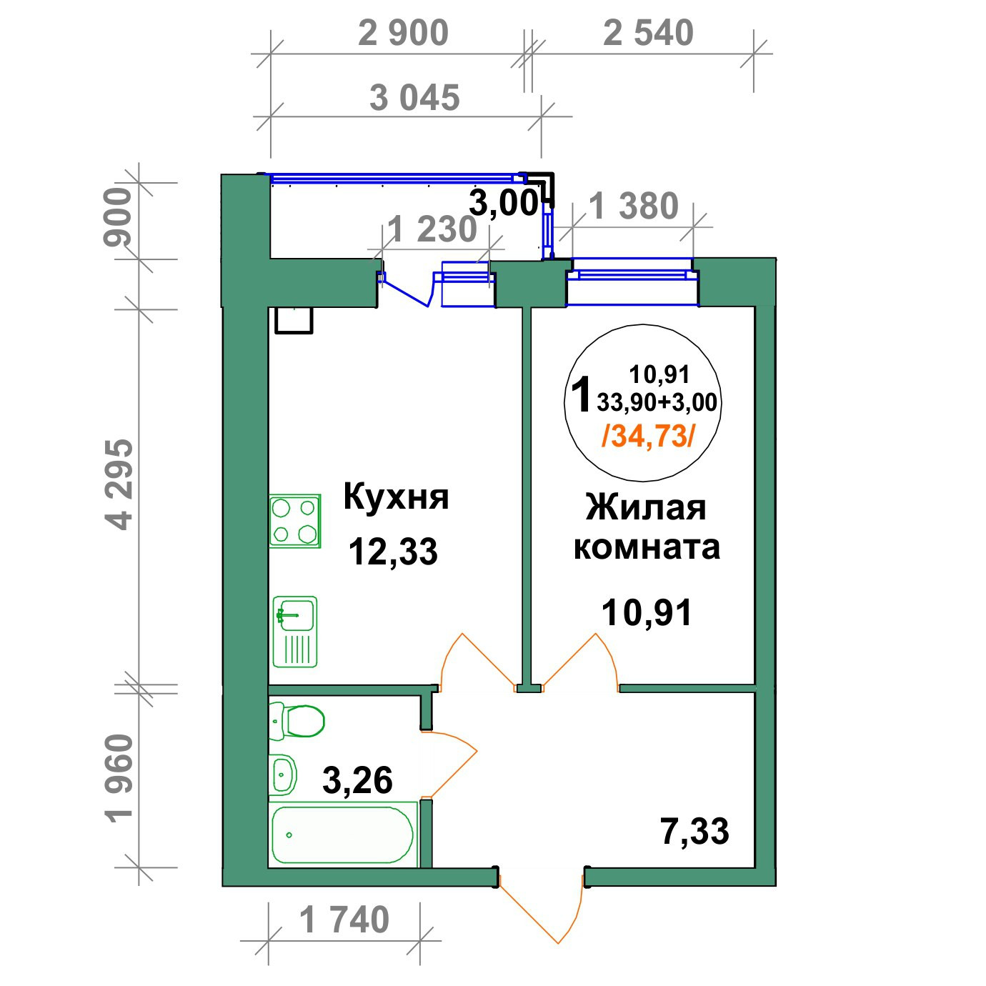 34 м2