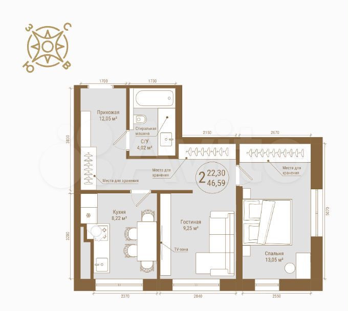 46 м2