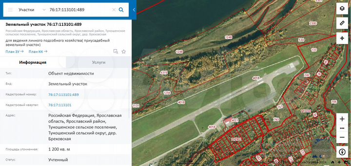 Бреховская Продаётся земельный участок - кад. номер 76:17:113101:489 площадью 1200 кв.м по адресу: Ярославская область, Ярославский муниципальный район, Туношенское сельское поселение, дер. Бреховская...