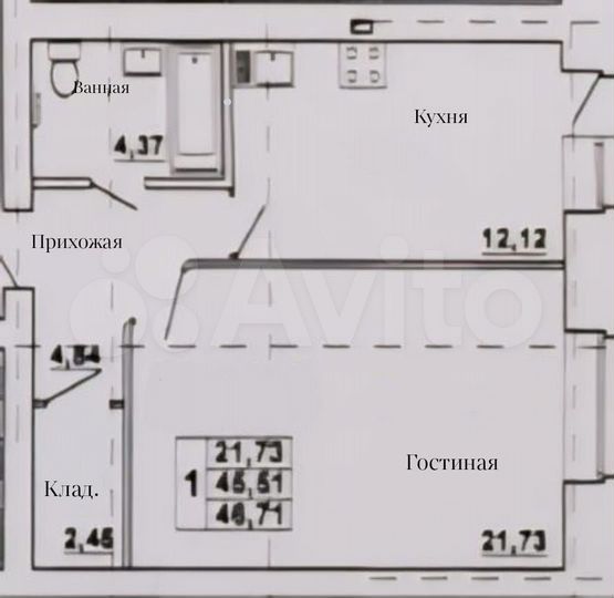 СОБСТВЕННИК. Продам 1-комнатную квартиру свободной планировки общей площадью 45,51 кв.м. Дом комфорт класса. Торг уместен.